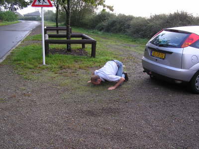 Arrival on site, pope Peter 3rd kisses the holy ground.